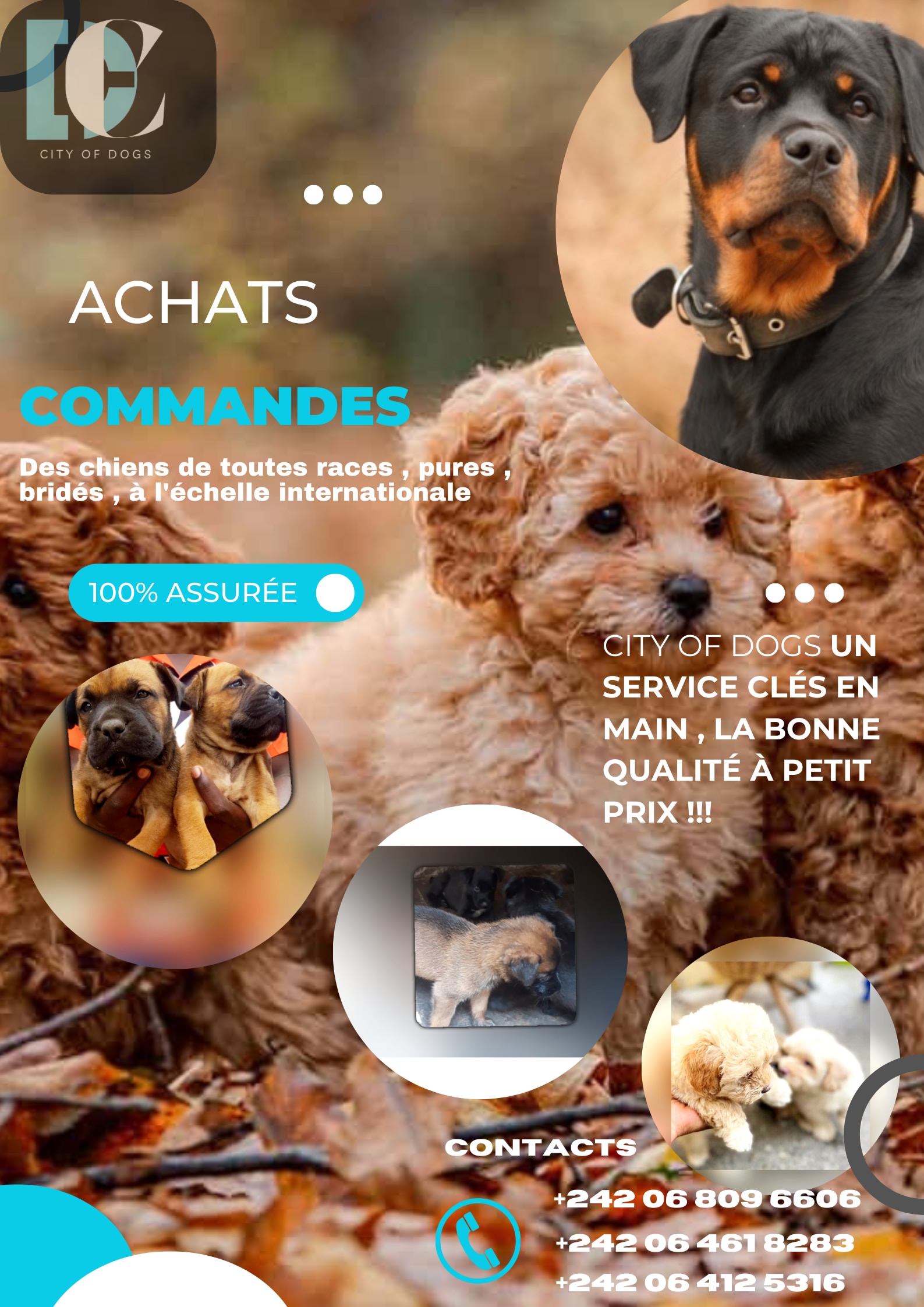 City of dogs ! Entreprise chargé à la satisfaction des clients qui sont à la recherche d'un animal de compagnie comme un chien!! Notre service client toujours actif pour vous entretenir!!