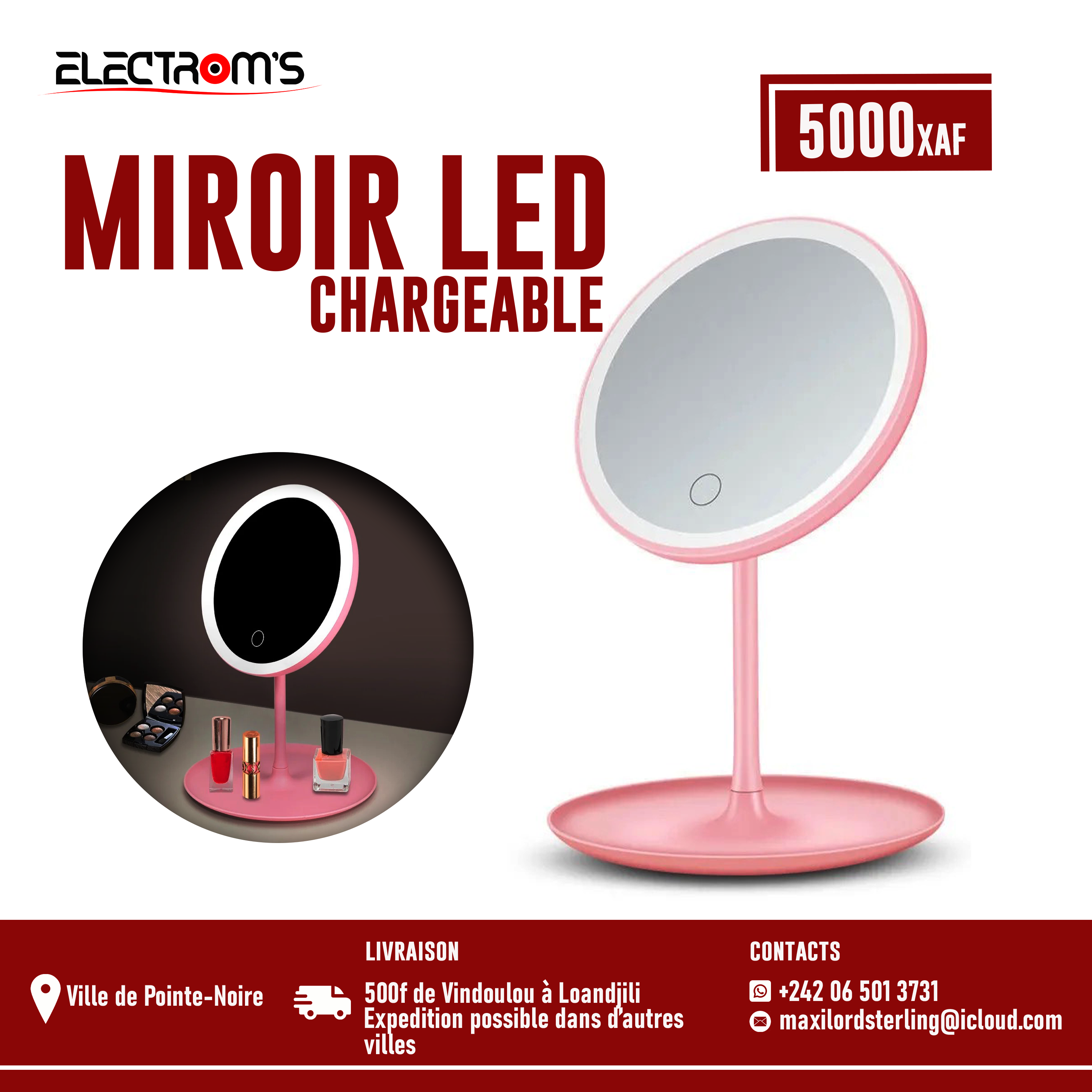 Miroir LED Faites-vous maquiller même dans l’obscurité avec ce magnifique miroir de beauté doté de 3 couleurs différentes de lumière 💡.